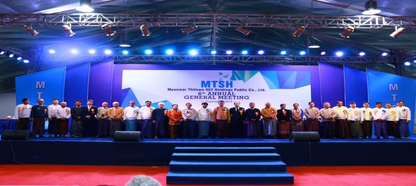 မြန်မာသီလဝါ အက်(စ်)အီးဇက် ဟိုးဒင်း ပတ်ဘလစ် အများနှင့်သက်ဆိုင်သောကုမ္ပဏီလီမိတက် ၏ ဆဋ္ဌမအကြိမ်မြောက် နှစ်ပတ်လည်အထွေထွေအစည်းအဝေးကို ၂၀၁၉ခုနှစ် စက်တင်ဘာလ ၁ ရက်၊ တနင်္ဂနွေနေ့က ရန်ကုန်မြို့၊ သာကေတမြို့နယ်ရှိ Fortune Plaza, Myanmar Expo Hall တွင် ကျင်းပပြုလုပ်ခဲ့ရာ ရန်ကုန်တိုင်းဒေသကြီးအစိုးရအဖွဲ့ ဝန်ကြီးချုပ် ဦးဖြိုးမင်းသိန်း၊ မြန်မာနိုင်ငံဆိုင်ရာ ဂျပန်သံအမတ်ကြီး H.E. Mr. Ichiro Maruyama၊ ရန်ကုန်တိုင်းဒေသကြီး လွှတ်တော်ဒုတိယဥက္ကဋ္ဌ ဦးလင်းနိုင်မြင့်၊ ရန်ကုန်တိုင်းဒေသကြီးအစိုးရအဖွဲ့မှ တာဝန်ရှိပုဂ္ဂိုလ်များ၊ ဌာနဆိုင်ရာတာ၀န်ရှိပုဂ္ဂိုလ်များ၊ YSX နှင့် SECMတို့မှ တာ၀န်ရှိပုဂ္ဂိုလ်များ MTSH ၏ ဒါရိုက်တာအဖွဲ့ဝင်များနှင့် အမှုဆောင်အရာရှိချုပ်၊ မိမိတို့ကုမ္ပဏီ၏ အစုရှယ်ယာရှင်များမှ တက်ရောက်ခဲ့ကြပါသည်။
