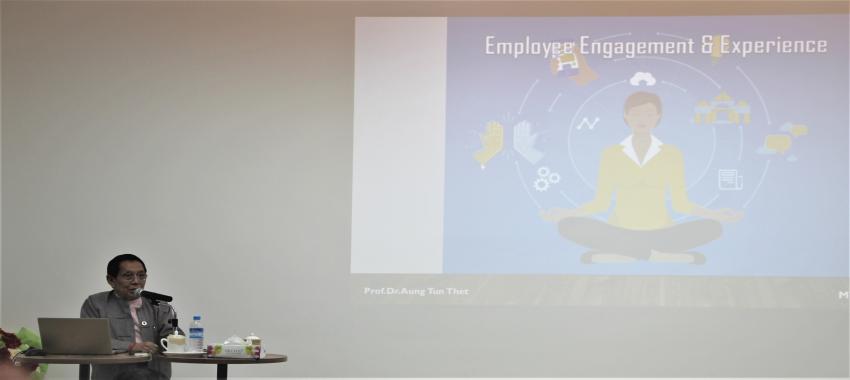 The program was focused on employee engagement and Professor Dr. Aung Tun Thet projected his lecture on how employee engagement and employee experience has become important factors in driving modern business.