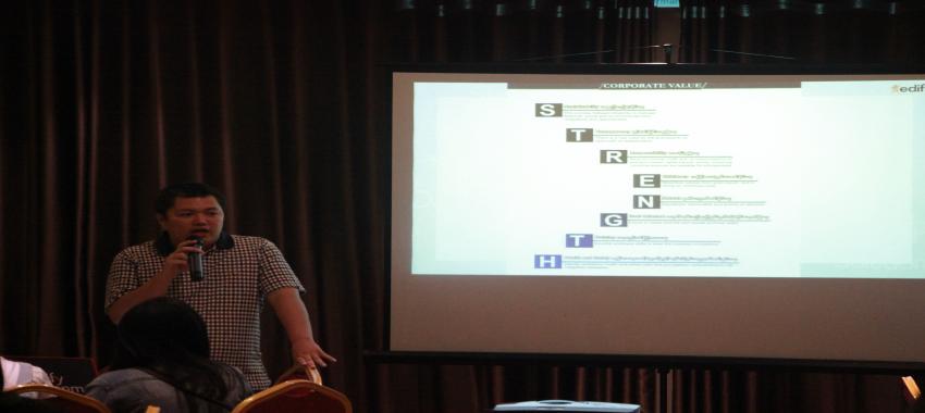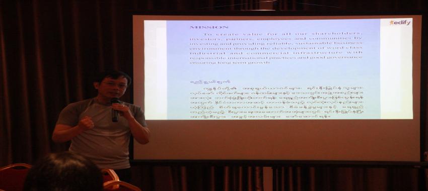 Daw Yadanar Zaw from Edify Myanmar Consultancy delivered lectures on Personal Values, Self-esteem and Organizational Cultures for individual development of participants and organizational development.